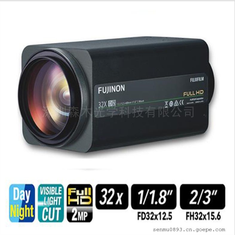 富士能1/1.8 12.5-400mm日夜透雾电动变焦镜头,2百万像素高清透雾长焦。32倍的高倍率变焦镜头,可应对全HD摄像机。